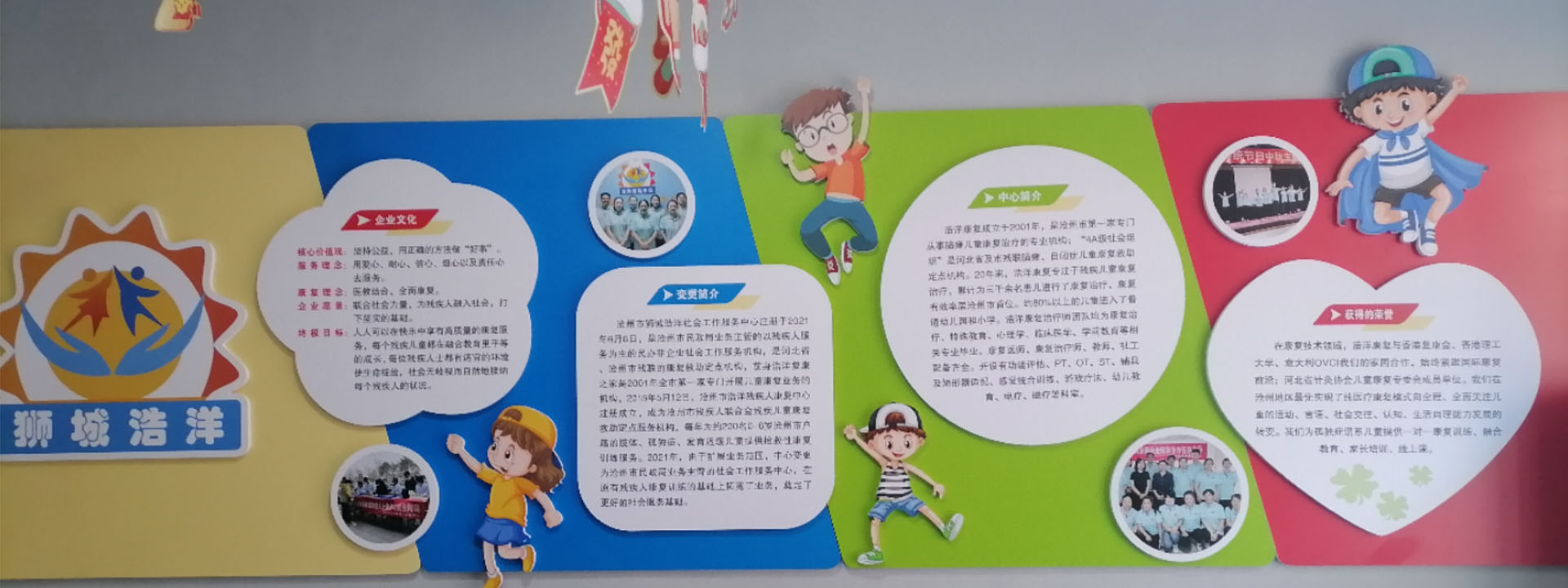 滄州市獅城浩洋社會工作服務(wù)中心注冊于2021年6月6日,是滄州市民政局業(yè)務(wù)主管的以殘疾人服務(wù)為主的民辦非企業(yè)社會工作服務(wù)機(jī)構(gòu)。前身浩洋復(fù)康之家是2001年全市第一家專門開展腦癱康復(fù)業(yè)務(wù)的機(jī)構(gòu),2015年5月12日,滄州市浩洋殘疾人康復(fù)中心注冊成立,成為滄州市殘疾人聯(lián)合會殘疾兒童康復(fù)救助定點(diǎn)服務(wù)機(jī)構(gòu),每年為約200名0-6歲滄州市戶籍的肢體、孤獨(dú)癥、發(fā)育遲緩兒童提供搶救性康復(fù)訓(xùn)練服務(wù)。2021年,由于殘聯(lián)不能再作為業(yè)務(wù)員主管單位,中心變更為滄州市民政局業(yè)務(wù)主管的社會工作服務(wù)中心,在原有殘疾人康復(fù)訓(xùn)練的基礎(chǔ)上拓寬了業(yè)務(wù),奠定了更好的社會服務(wù)基礎(chǔ)。